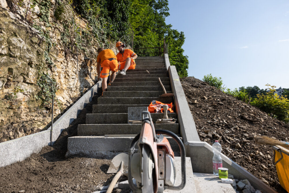 Das Projekt auf dem steilen Hang verlangte von unseren Mitarbeitenden nicht nur Ausdauer, sondern auch eine kommunikative Zusammenarbeit mit diversen anderen Firmen. Umso stolzer sind wir, dass wir nach der viermonatigen Bauzeit das Projekt erfolgreich abschliessen und den Schaffhauser Bewohnerinnen und Bewohnern eine sanierte Verbindung zwischen den Quartieren bereitstellen durften.